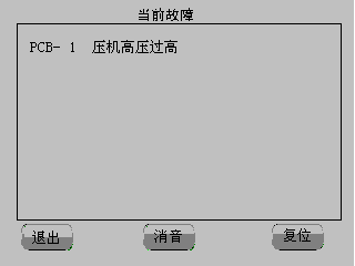 正常情況下“故障查詢”按鍵隱藏,當出現(xiàn)新故障時,運行主接口“故障查詢”按鍵閃爍并報警,按“故障查詢”鍵后進入故障查詢界面,如上圖4-10所示。在故障查詢界面按“消音”鍵停止報警,確認故障排除后可按“復(fù)位”鍵使機組復(fù)位。